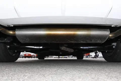 车身侧面的隐藏式门把手和大尺寸轮毂很有科技感,20英寸双色轮毂搭配红色卡钳,运动气息十足,而且大轮毂带来的抓地力也很扎实,过弯时能提供更好的稳定性。车尾的贯穿式LED尾灯和双边双出排气布局,进一步强化了运动氛围,夜晚停在小区里或者公司楼下,回头率确实不低。