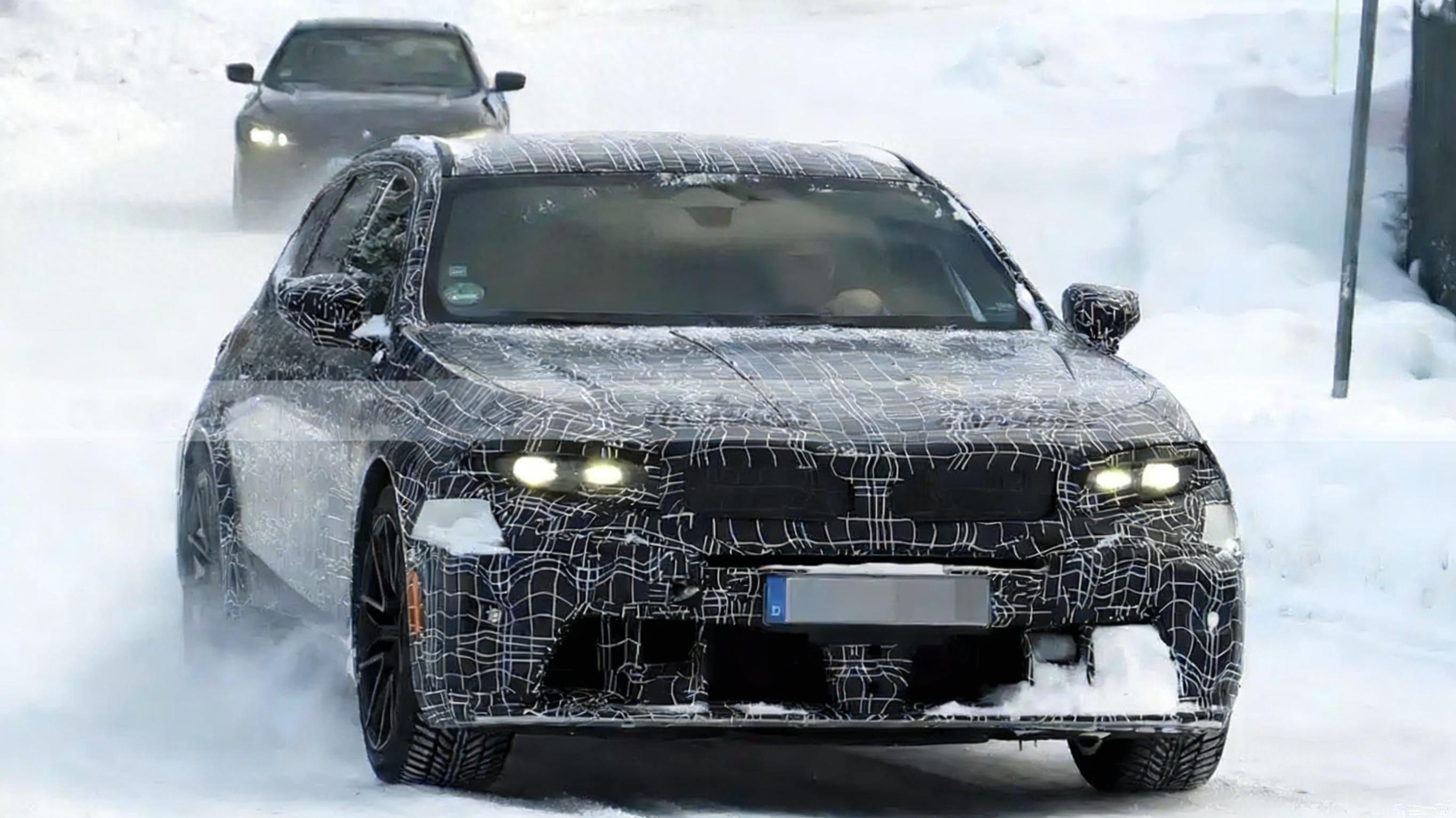 外观上,前脸 双肾格栅尺寸缩小,看着更扁平更宽,致敬经典E39世代5系。测试车和谍照出现两种格栅设计,最终样式还未确定。大灯变得更细更锐利,开眼角设计,和中网连在一起,日行灯换成新双斜杠样式。前保险杠进气口大,更好的高性能散热。前唇重新设计,垂直分割布局替代现款横向设计。