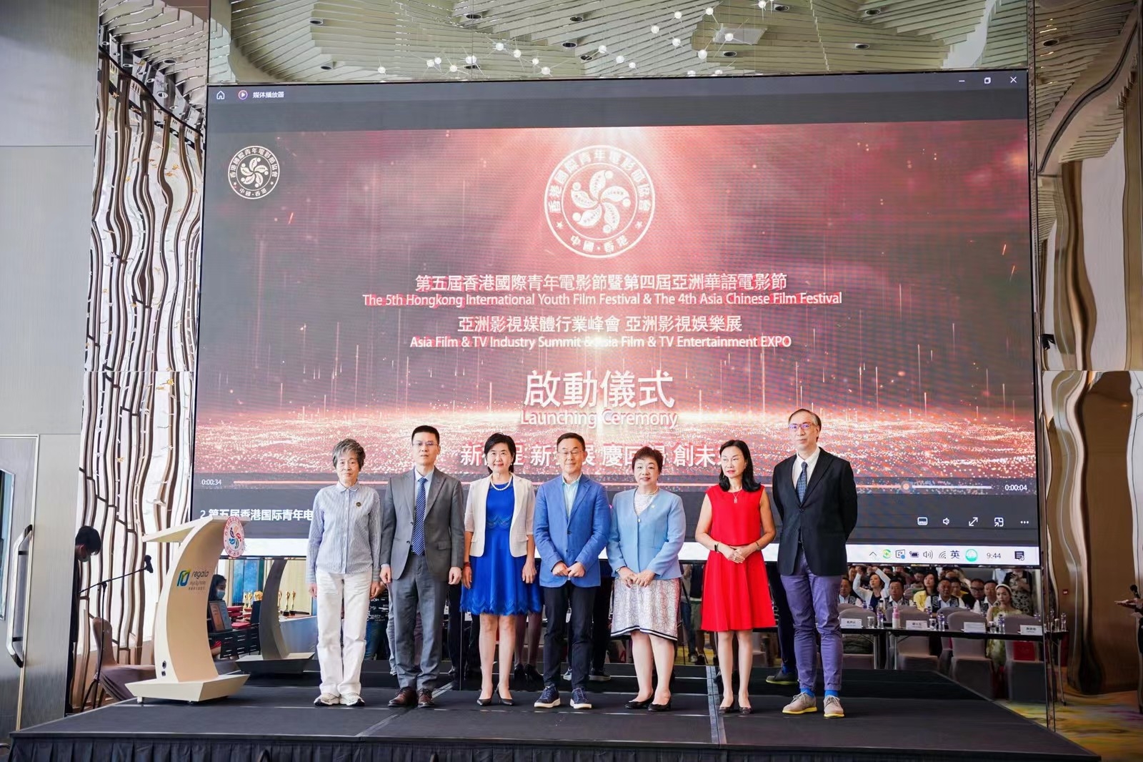 启动仪式上,香港电影发展局顾问冯炜源先生,香港特别行政区选举委员会委员、中国香港(地区)商会荣誉会长萧惠君女士,香港国际青年电影节协会、香港国际文化艺术交流中心创办人易成先生,香港国际青年电影节协会荣誉会长高群耀博士、侯沐天博士,好莱坞国际影业(香港)有限公司董事长王小瑞等上台启动本届电影节系列活动;
