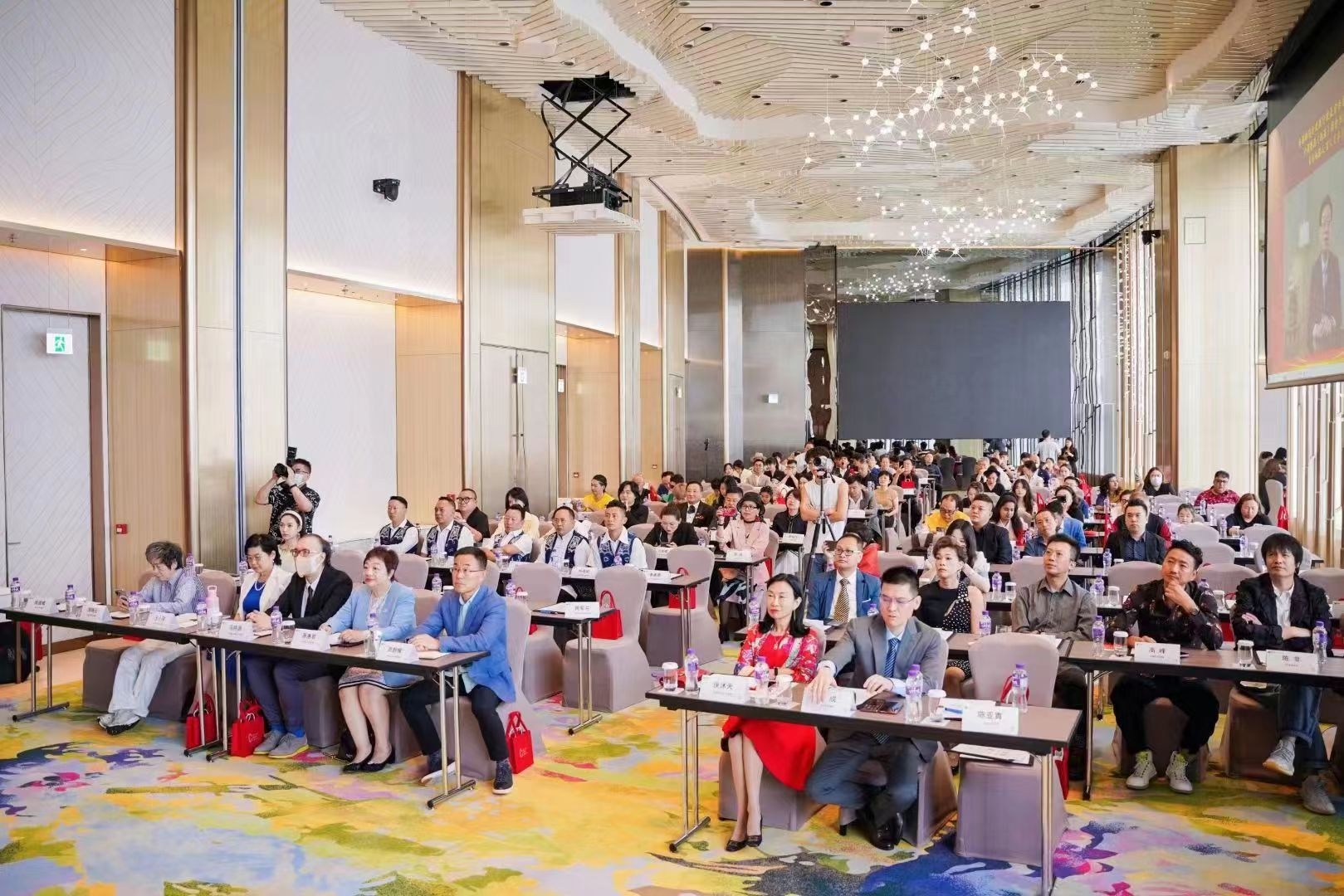 开幕荣誉嘉宾萧惠君致辞,寄望青年影视人必须积极地适应大变局的变化,抓住新机遇、迎接新挑战、提高行业竞争力,在国际舞台中爭取一席之地,同时先后播放了中国香港(地区)商会筹拍的公益纪录片《内地港人·百人百事》宣传片以及香港特别行政区行政长官李家超对该片的推介视频;高群耀博士做主题为人工智能时代的电影产业,与现场青年电影人及业界同仁分享对电影产业未来的思考与判断,在场影人备受启发。