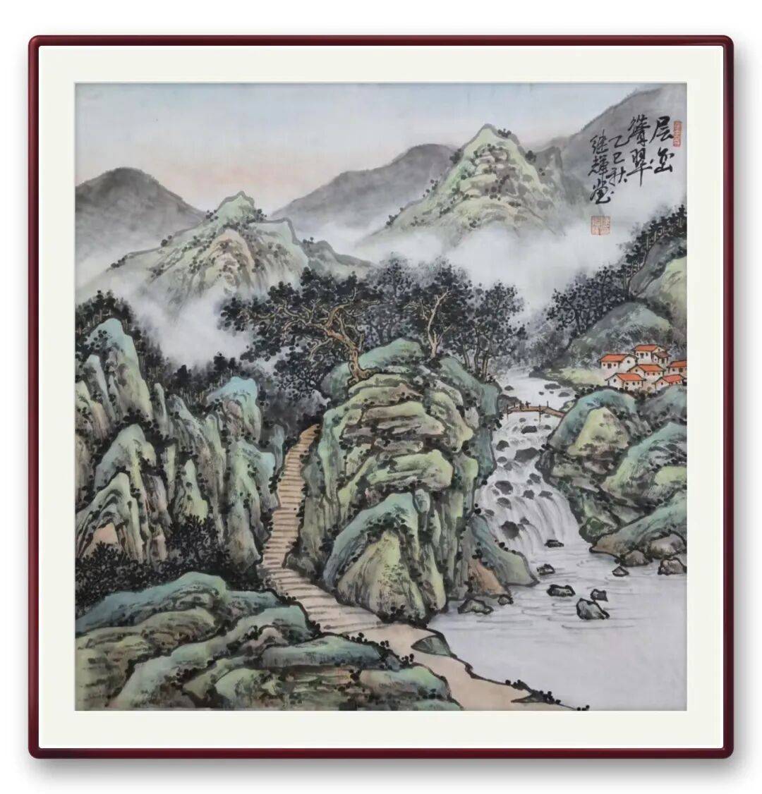 其山水画,虽未着墨过多,却可从笔墨意趣中窥见风骨。得益于长期从事古建设计的积淀,他对山水意境的营造,暗合古建与自然共生的理念,山石的肌理、林木的葱郁、云雾的流转,皆透着人与自然和谐共生的哲思。笔墨浓润厚重,却不滞涩,寥寥数笔便勾勒出山水的苍茫与灵秀,既有传统山水的悠远意境,又有自身对山水文化的独特解读,观之令人心生向往,有回归自然、涤荡心灵之感。