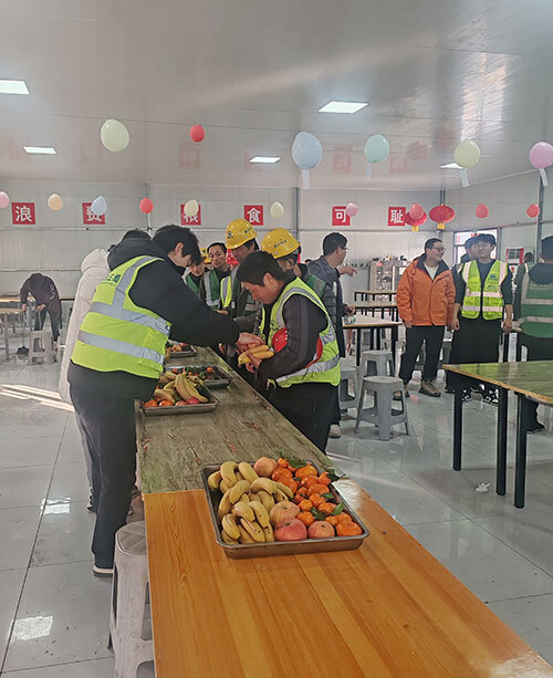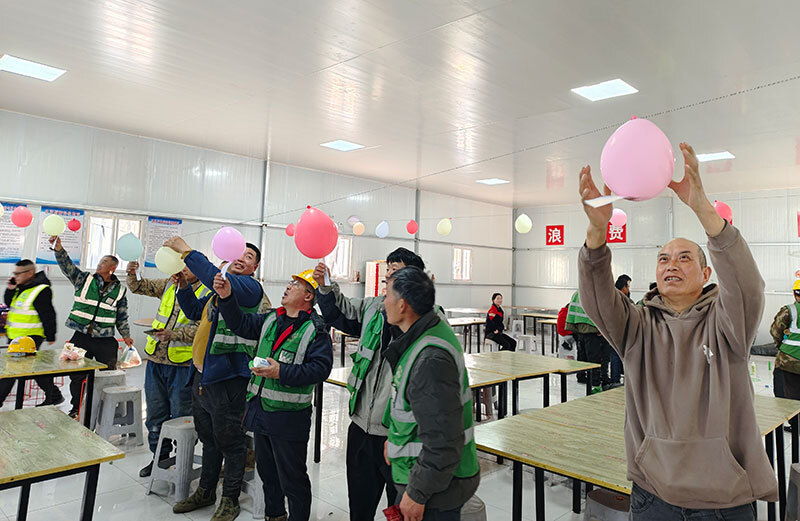 此次团建活动有拔河、投篮、套圈、猜灯谜等内容,活动精彩纷呈、妙趣横生。整个活动期间,大家欢声笑语,让留守工人有了在家一样的温馨感受。晚上,项目部还组织项目管理人员与工友一起吃年夜饭、集体看春晚,洋溢着和谐浓厚的节日氛围。