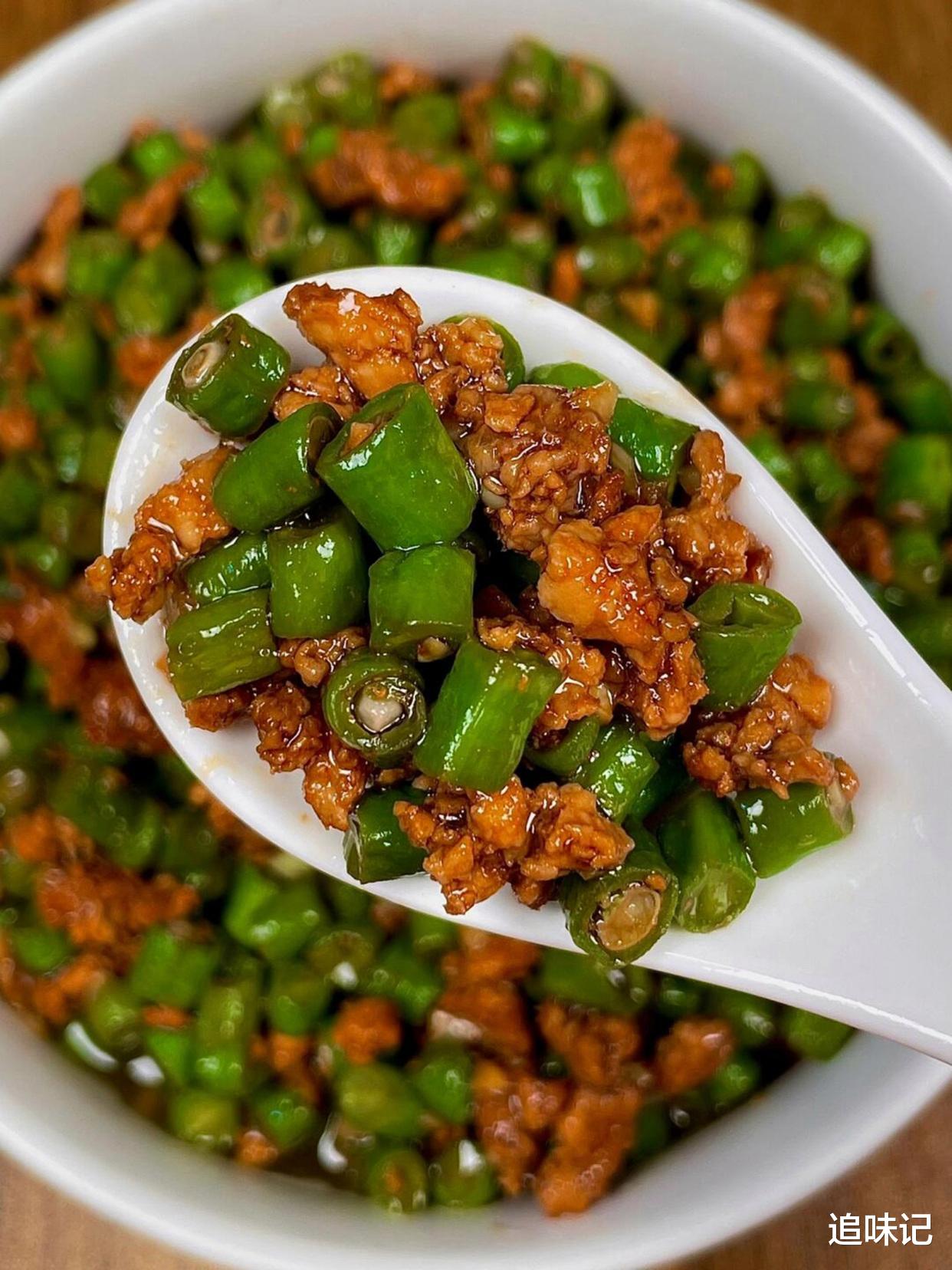豆角炒肉末豆角特别嫩滑,肉末裹着酱香,咸甜适口带点微甜,豆角粒咬起来脆脆的,混着肉香特别下饭。