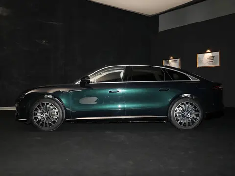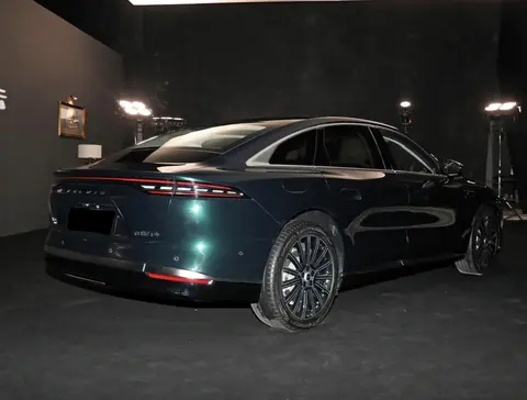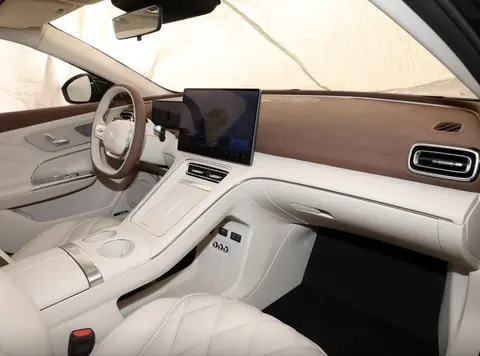 车身侧面最亮眼的是溜背造型与隐藏式门把手,配合20英寸空气动力学轮毂,将风阻系数压至0.23cd,优于多数同级车型。细节处,车窗边框镀铬饰条与车门下方折线呼应,充电口隐藏于左后翼子板,既美观又减少风阻干扰。车尾部分,贯穿式尾灯采用“星芒”点亮效果,搭配微微上翘的扰流板与扩散器造型,进一步优化高速气流,整体设计兼顾豪华感与空气动力学效能。