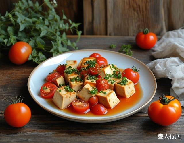 砂锅里咕嘟作响的番茄豆腐煲,是素菜中的暖心担当。老豆腐切厚块煎至两面金黄,与去皮番茄丁同炖。当番茄素熬出沙沙的质感,淋入水淀粉勾出浓稠红汤,最后撒上翠绿的葱花。红白绿三色交织,像极了雪地里绽放的寒梅。