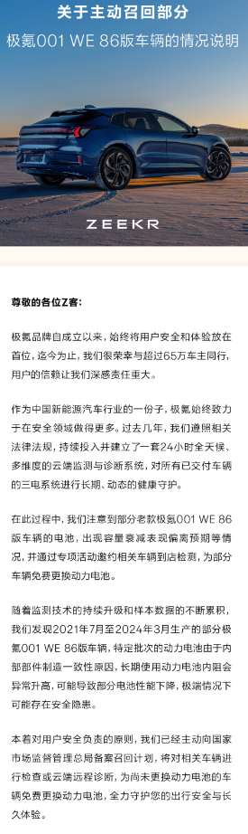 影响车主体验以及存在一定的风险,极氪就主动进行召回。