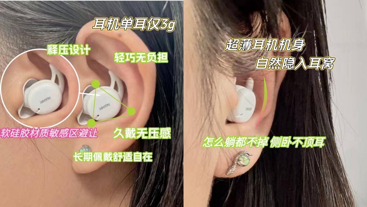 选睡眠耳机,佩戴舒适度的关键在于重量和材质的双重把控。过重的耳机是睡眠的“绊脚石”,不仅易压耳,还会影响睡姿,单只3g左右的轻量化设计才是正确选择,轻盈机身能最大程度降低异物感。材质上要选亲肤柔软的硅胶,这种材料触感温和,不会刺激耳道皮肤,同时弹性十足,能紧密贴合耳道,兼顾稳固与舒适,让你戴着耳机也能酣然入梦。