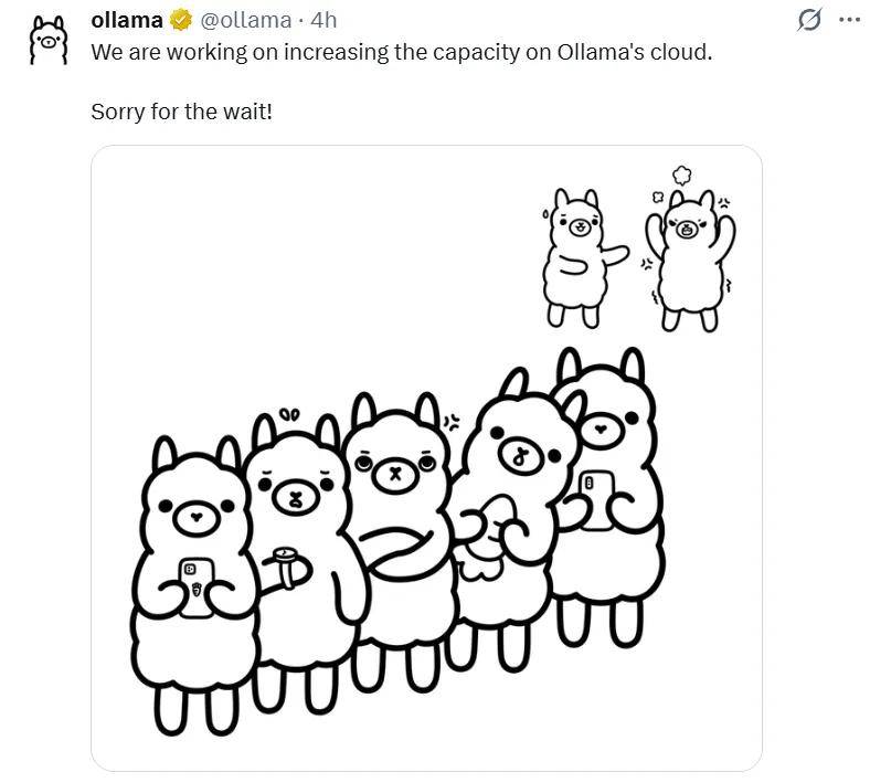 甚至就连 Ollama 的云服务也在上线 GLM-5 之后被挤爆了。