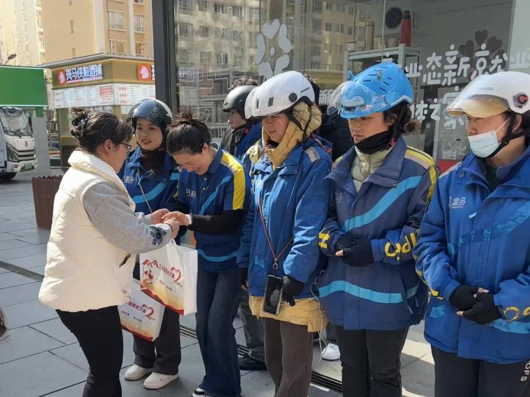 护国街道总工会与祥云街社区工作人员带着满满的温情走进了南强街工会驿站,将慰问物资送到宁波鹏远信息科技有限公司(外卖配送员)、中通快递南捷物流及天竺经营部等一线站点的新就业形态劳动者的手中。