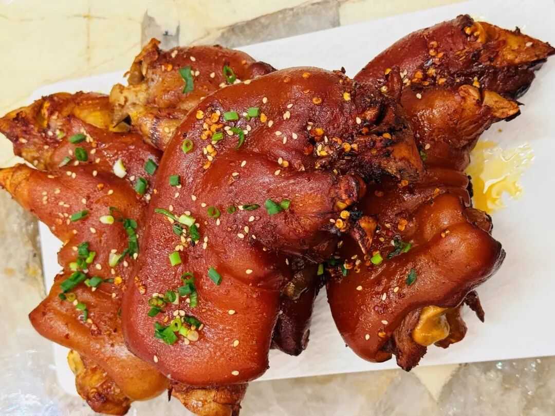 卤好的猪手,色泽红亮,软烂脱骨,肥而不腻,吃起来既好吃,又有好寓意,摆上桌,是一家人都喜欢的菜。