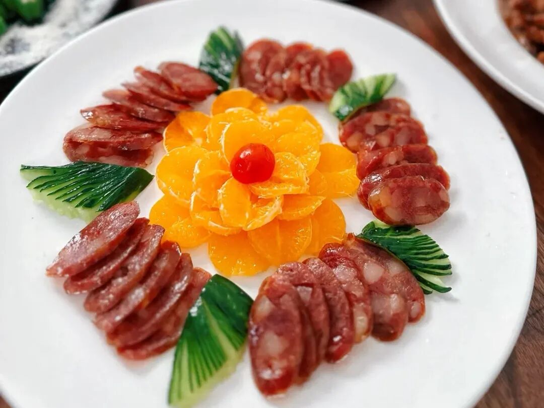 广东人的年味,离不开腊味,腊味拼盘,就是年夜饭桌上的特色菜,用自家晒制或本地正宗的腊肉、腊肠、腊鸭,切成薄片,摆成精致的造型,上锅蒸个10分钟就可以了。