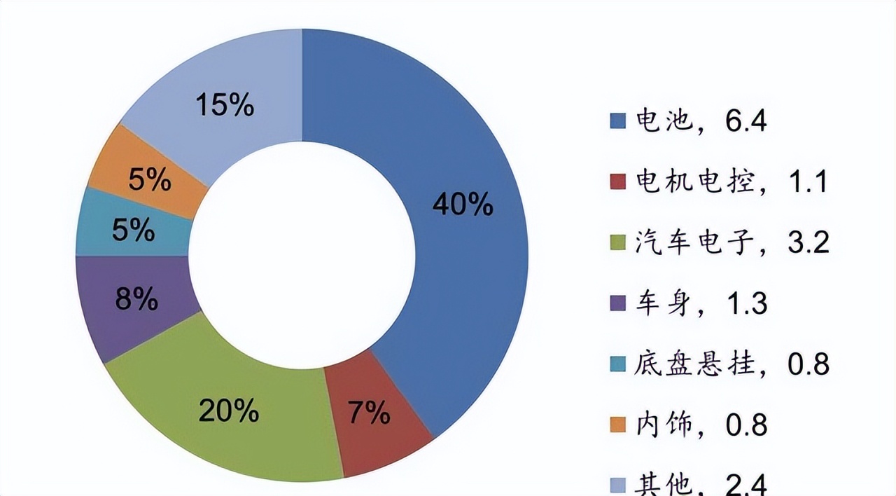 先看核心部件。电池是最大头,当时市场价大约每度电1000元左右,60度电的电池组成本大概6万元。电机加减速器总成,采购价一般不超过1万元。