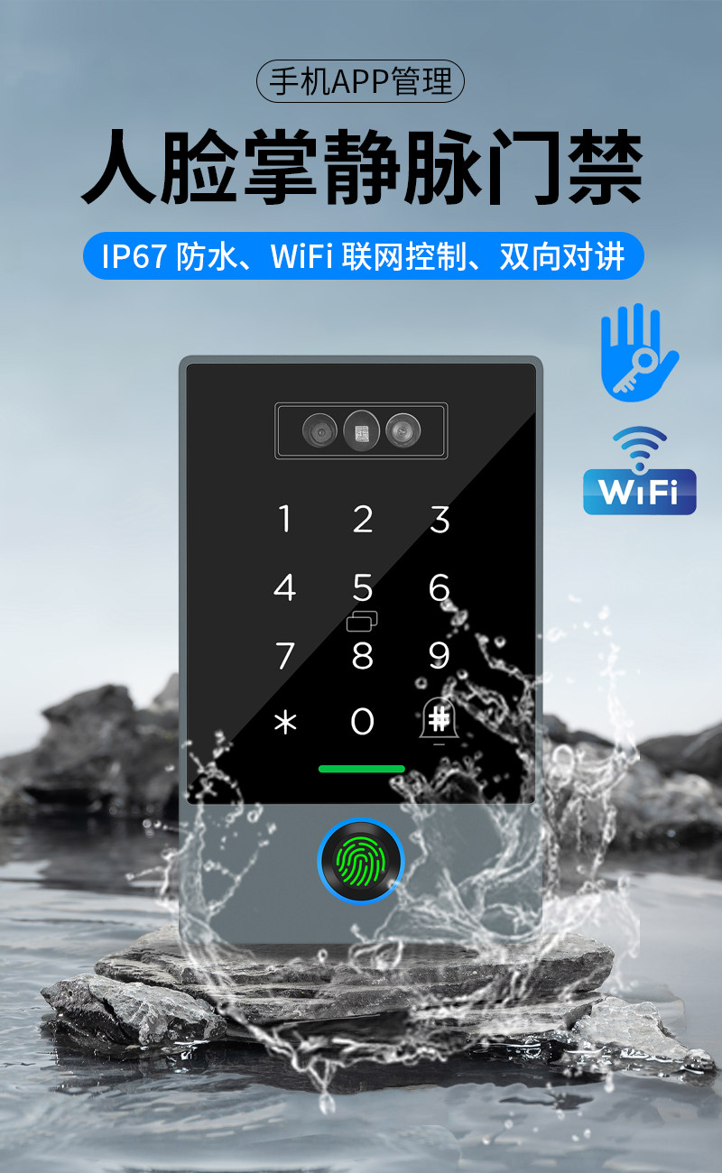 产品形态:小巧的面板式设备,仅保留摄像头和指示灯,支持人脸识别+掌静脉识别+密码输入,可直接安装替换传统门禁。