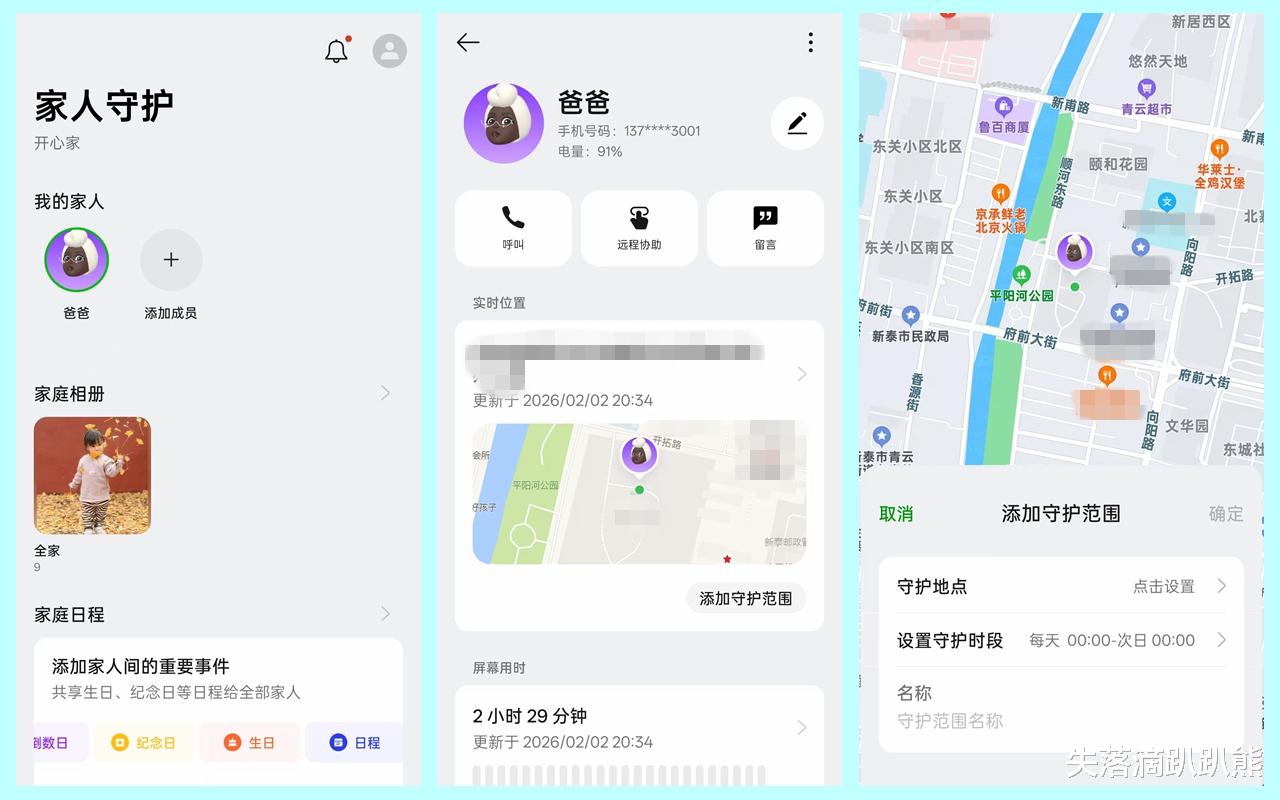 ColorOS的适老功能优秀,其中专门适配老年用户的“家人守护功能”可以说是给子女的安心神器,不仅能随时看到父母的实时位置,还能设置守护范围一旦父母离开设定区域就可以收到提醒,遇到父母搞不定的手机问题我也可以用远程协助功能提供帮助。