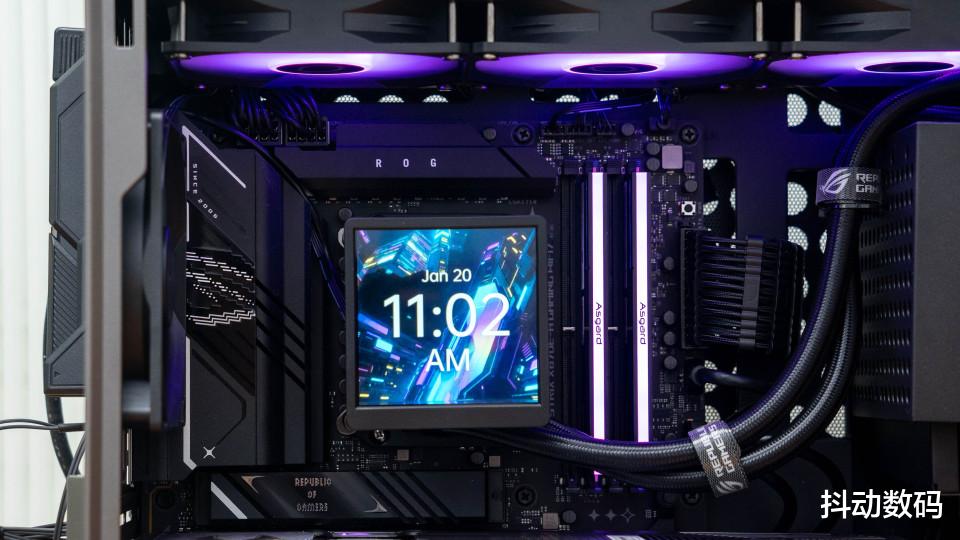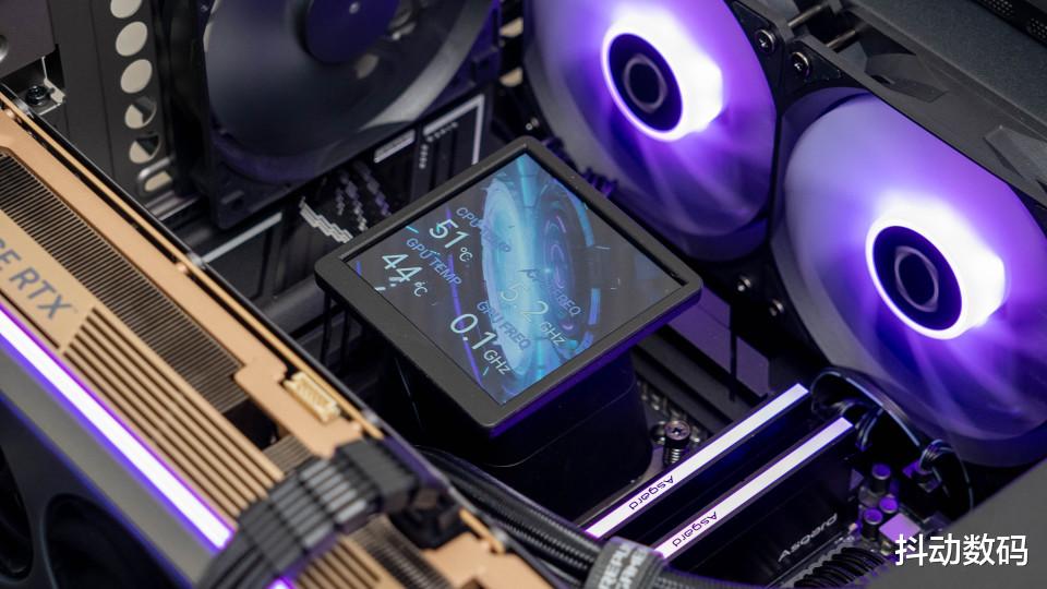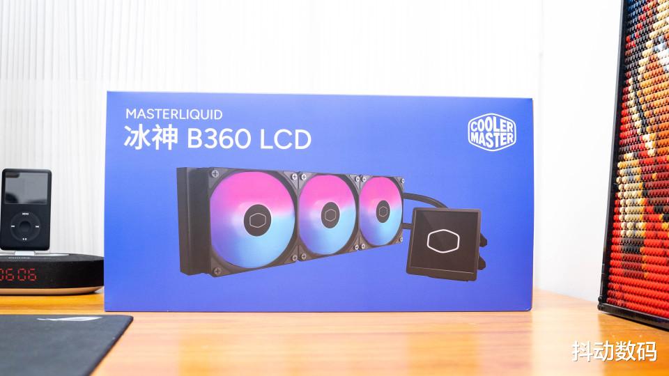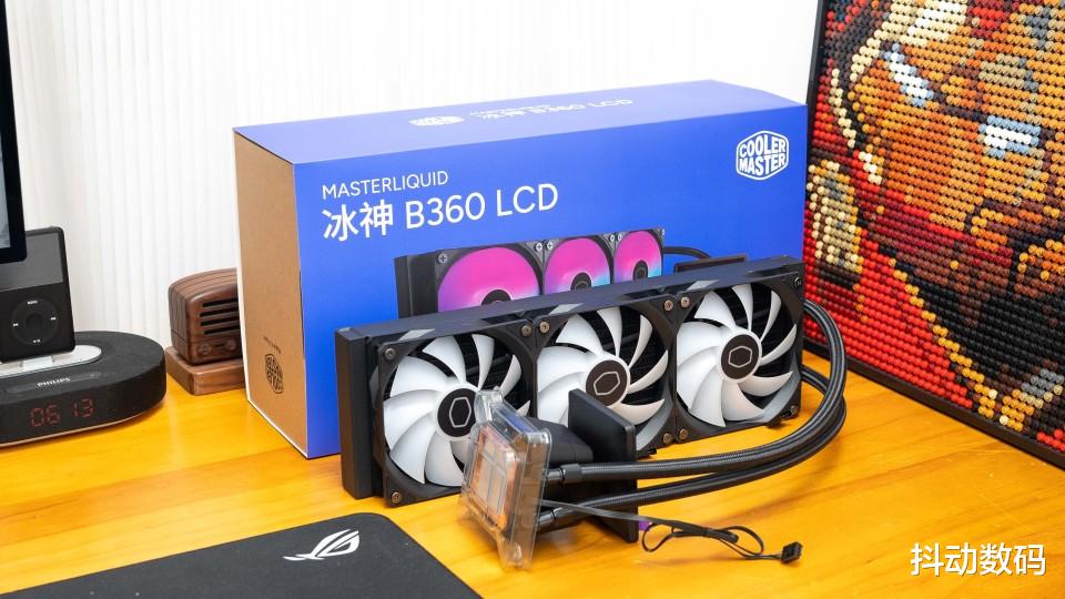 散热选择的是酷冷至尊的冰神B360 LCD ARGB一体式水冷散热器,3.95英寸的方形屏幕设计。