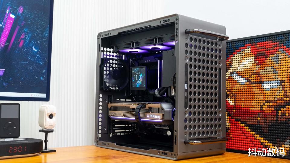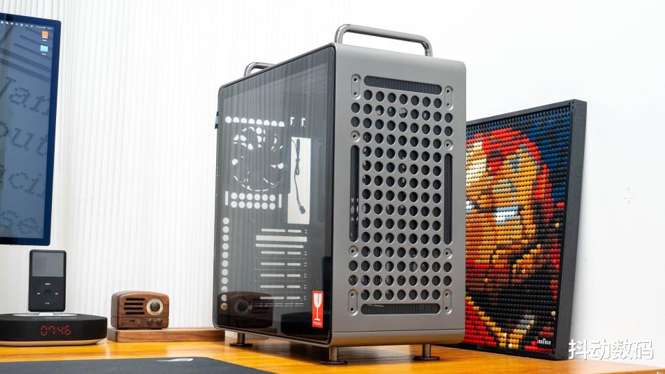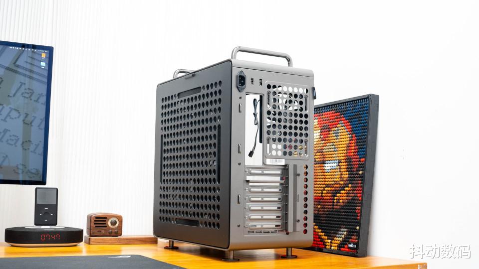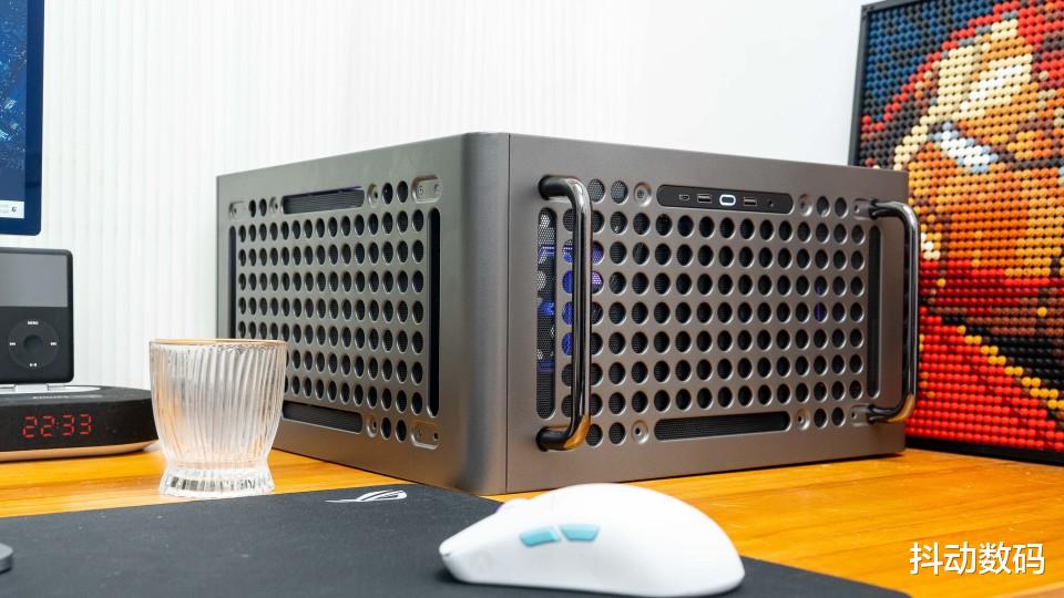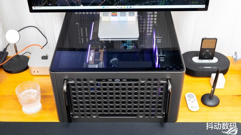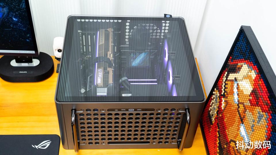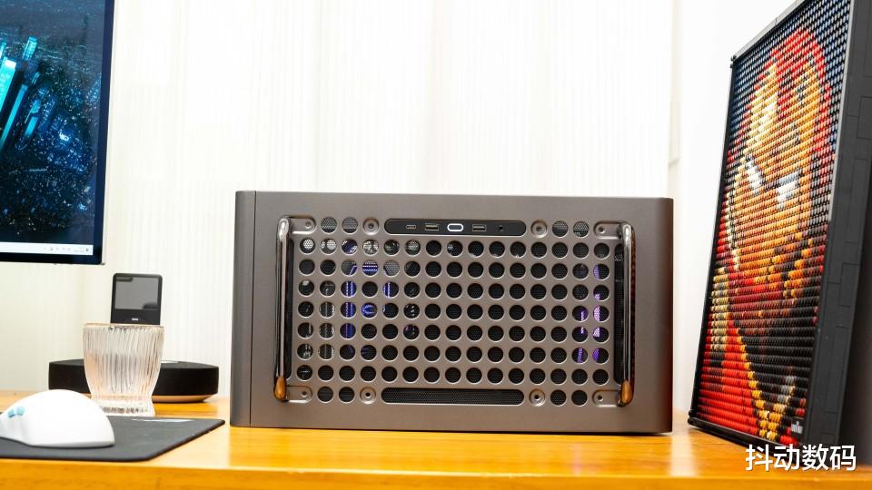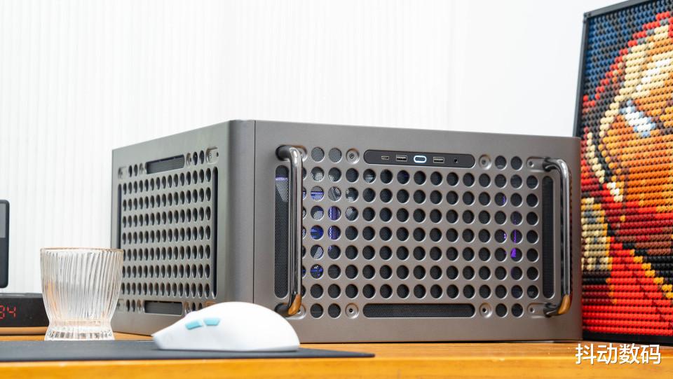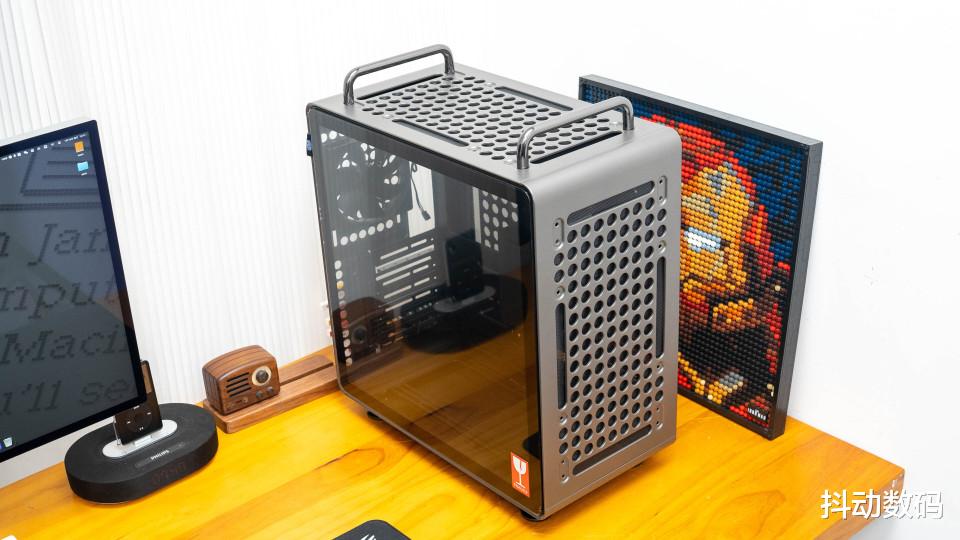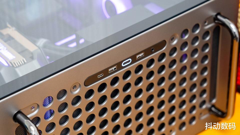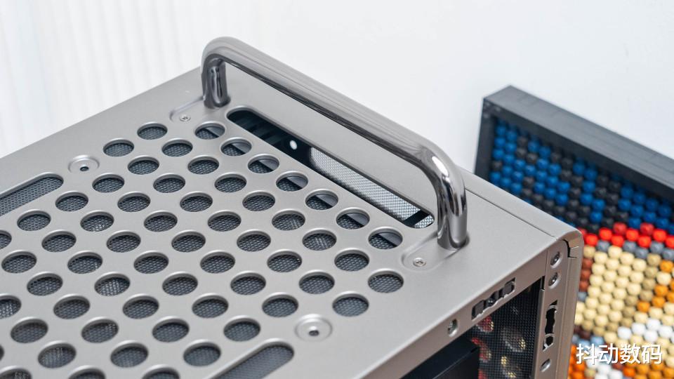 机箱顶部的两个提手设计,很多苹果Max Pro 的感觉。但是我觉得它更像是当年卧式机箱正面的提手设计,而且这个提手也可以根据装机需求,调整其安装位置。