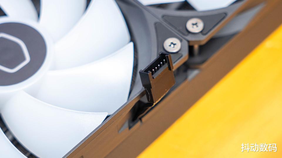 风扇接口特写,可以通过附件线材实现串联。