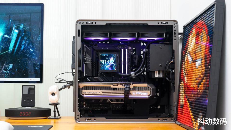 目前540这款机箱只有一个侧透的配置可选,如果有非侧透挡板的话当作卧式机箱效果可能会更好,但目前的效果搭配机箱内的灯光可能更有些赛博朋克的感觉。