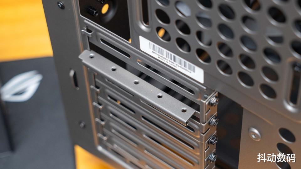 此外还注意到一个细节,在显卡的PCI挡板位置,还预留了一个支持显卡竖插的固定挡板。