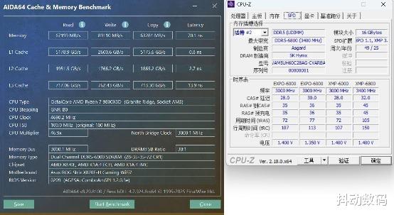 阿斯加特女武神·瓦尔基里Ⅱ代6000MHz CL28 内存AIDA 64读写测试如图。