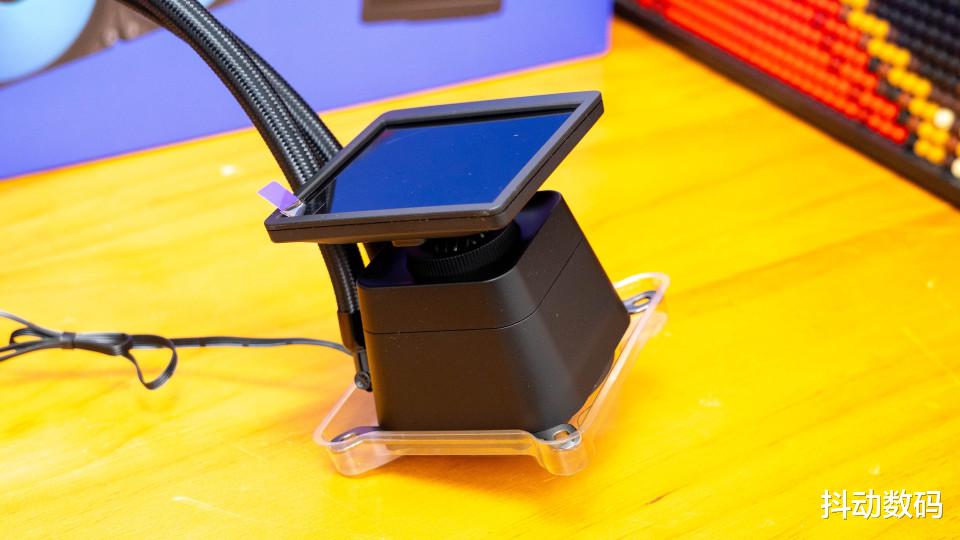 这款水冷采用3.95英寸大屏,分辨率480*480,可旋转屏幕底座设计,可以方便调整屏幕朝向。冷头底部内置了三相电机设计,可以为叶轮提供三重推力,使电机旋转更稳定。整体水冷质保5年。