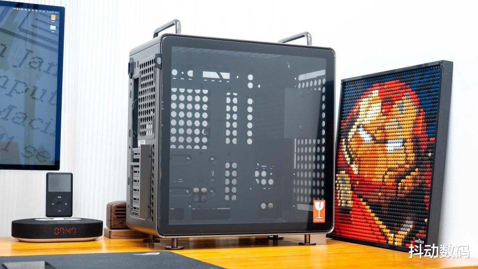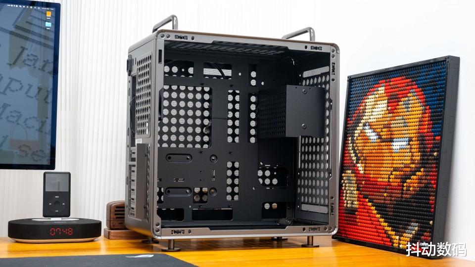 机箱整体尺寸为425×225×425 mm,采用钢材与钢化玻璃组合材质。机箱一周采用了类似「洞洞板」的开孔设计,每个洞洞边缘切割整齐,可以搭配3D打印附件实现更多的玩法。不过我倒是希望,后期出一个非钢化玻璃侧透的DLC升级附件,让我可以作为卧式机箱使用。