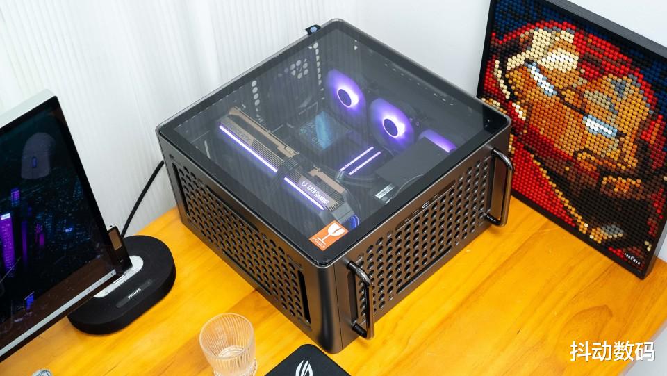 本身侧透的设计,在桌面上配合内部隐约的灯光,还是有一定的赛博质感。未来如果有非侧透侧板可以选购,我愿意加购新的DLC附件。