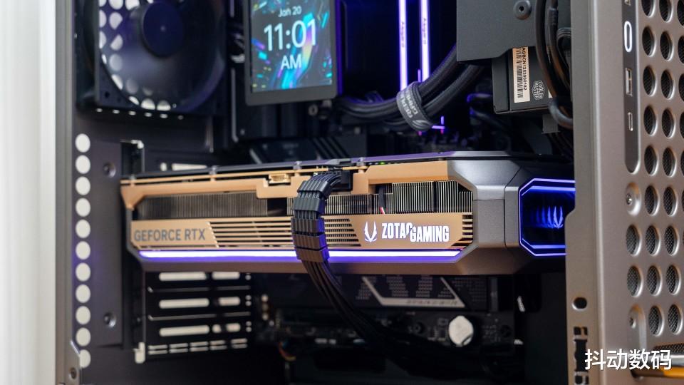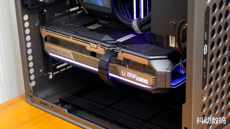 这款索泰的RTX 5080 AMP EXTREME INFINITY显卡尾部的无线幻境灯光效果非常帅气。