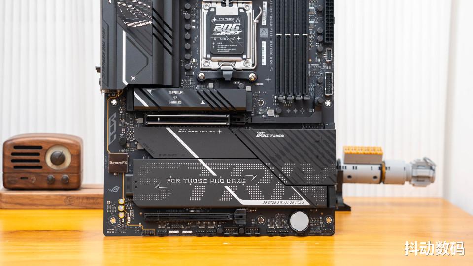PCIe 5.0 x16 SafeSlot 插槽还做了加固设计,另外显卡快拆设计则改回了机械式快拆结构设计,也符合当下玩家需求。