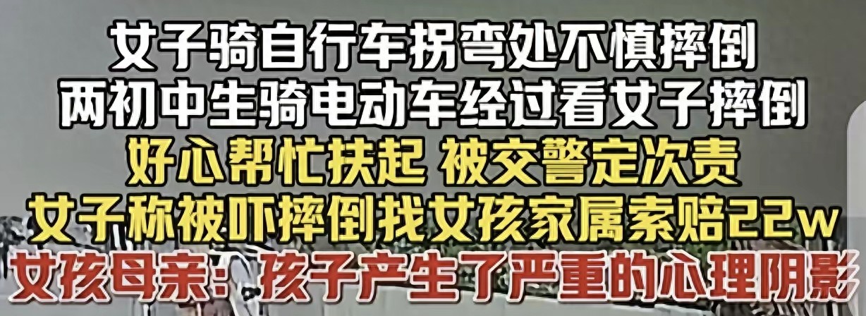 本以为是一次随手助人的温暖小事,谁知大姐起身后一口咬定:是这两个孩子突然出现把她“吓”倒的。尽管监控清晰显示双方毫无物理接触,交警却认定女生的出现对事故有“影响”,需负次要责任。随后,大姐将其中一名女生及家属告上法庭,索赔医疗费、伤残赔偿金等各项费用,总计22万余元。