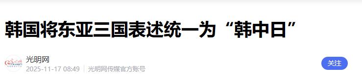 而就在中日关系越来越紧张的时候,韩国李在明政府突然宣布:以后统一用“韩中日”。