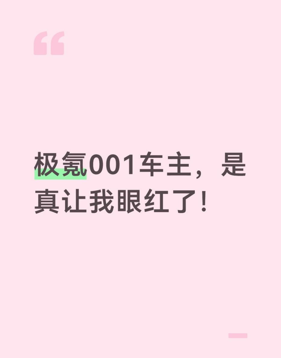 不过极氪,你多少还是考虑考虑我们其他车型的老车主吧,看到这些开了三五年的001车主,现在能免费换电,谁不羡慕!?虽然咱都是自家人,也是会眼红的好吧