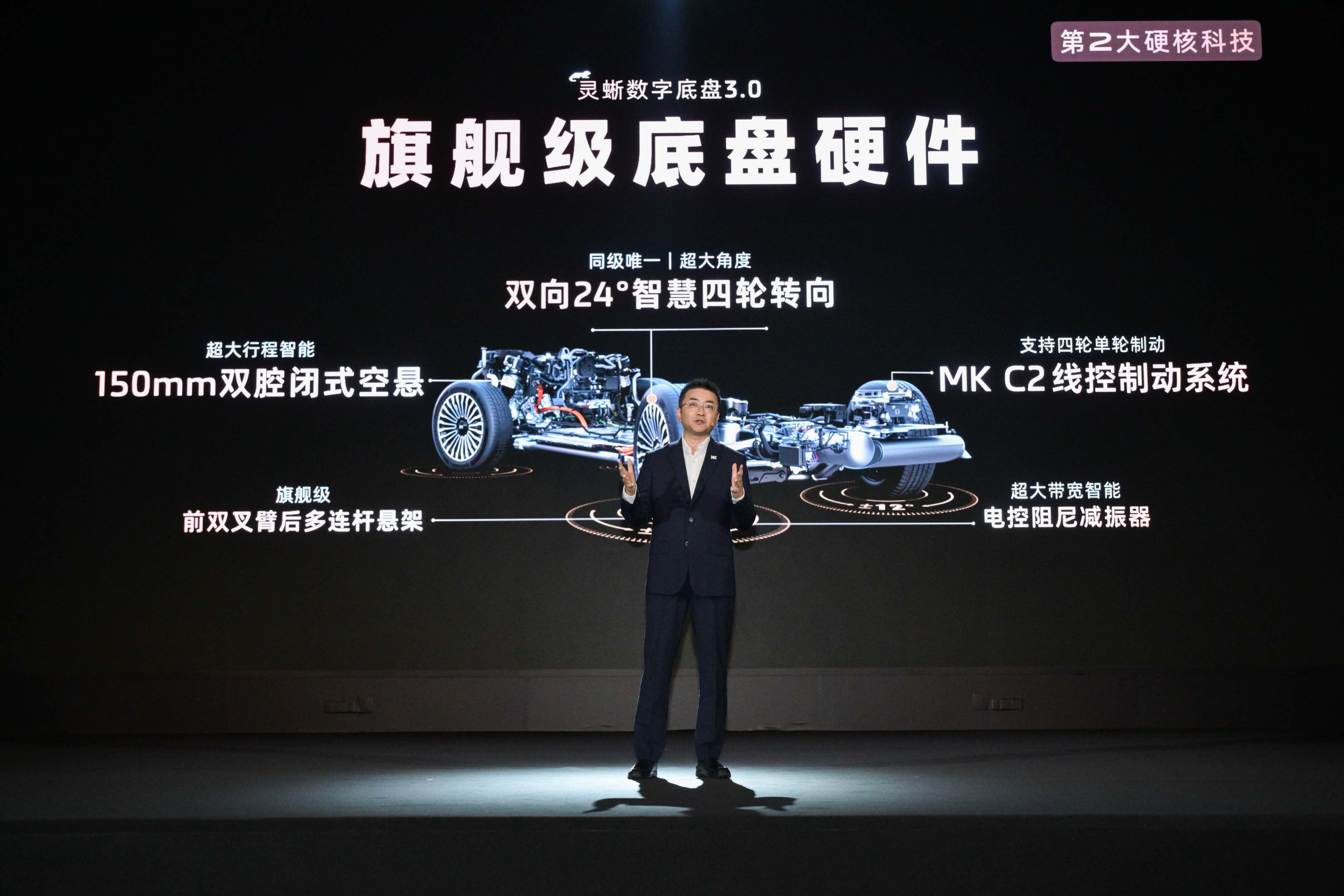 驾控体验上,灵蜥数字底盘3.0让这台近5.3米的全尺寸SUV“比Polo灵活,比五座好开”。双向24°智慧四轮转向系统实现4.95米超小转弯半径,狭窄路口、地库可从容通过;150mm超大行程双腔空气悬架+智能电控阻尼调节,高速过弯不侧倾、碎石路面不颠簸。行业首创的“舒享防晕模式”大幅降低晕车感,灵蜥矢量四驱、爆胎稳定控制系统等配置,更兼顾越野能力与旗舰级安全。