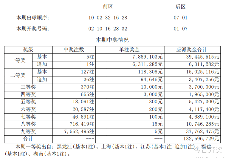 本期为大乐透的第25135期开奖,本期全国销售金额:310,594,999元,本期使用第3套摇奖球,本期出球顺序: 10 02 32 16 28 +07 01,本期开奖号码: 02 10 16 28 32+ 01 07,本期大乐透前区五个号码都是偶数号码,这还是挺少见的,其中还有一组同尾数的号码,连号跟掉号本期都缺席了,后区的是全奇数号码,两个都是单数,而且这两个号码还是同路数的号码,那么开出这样的号码组合全国彩民中奖情况如何了?