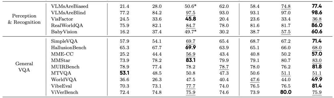 在 VLMsAreBiased、VLMsAreBlind、BabyVision 等视觉感知能力基准中,豆包 2.0 取得了业界最高分。