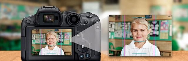 佳能将此次推出的自定义网格线功能命名为Cropping Guide(裁切指南),它是针对人像摄影设计的,更准确来说是针对证件照拍摄设计的,提供了大量预设网格线功能,比如一些网格线会用一些标记,将下巴、前额、耳朵对准在相同位置,也有些网格线是用于拍摄全身肖像的,还提供了4×6、5×7 和 8×10(4×5)多种兼容打印尺寸的网格线。有了这个网格线,可以简化后期工作,也避免输出时照片与相纸不匹配的问题。