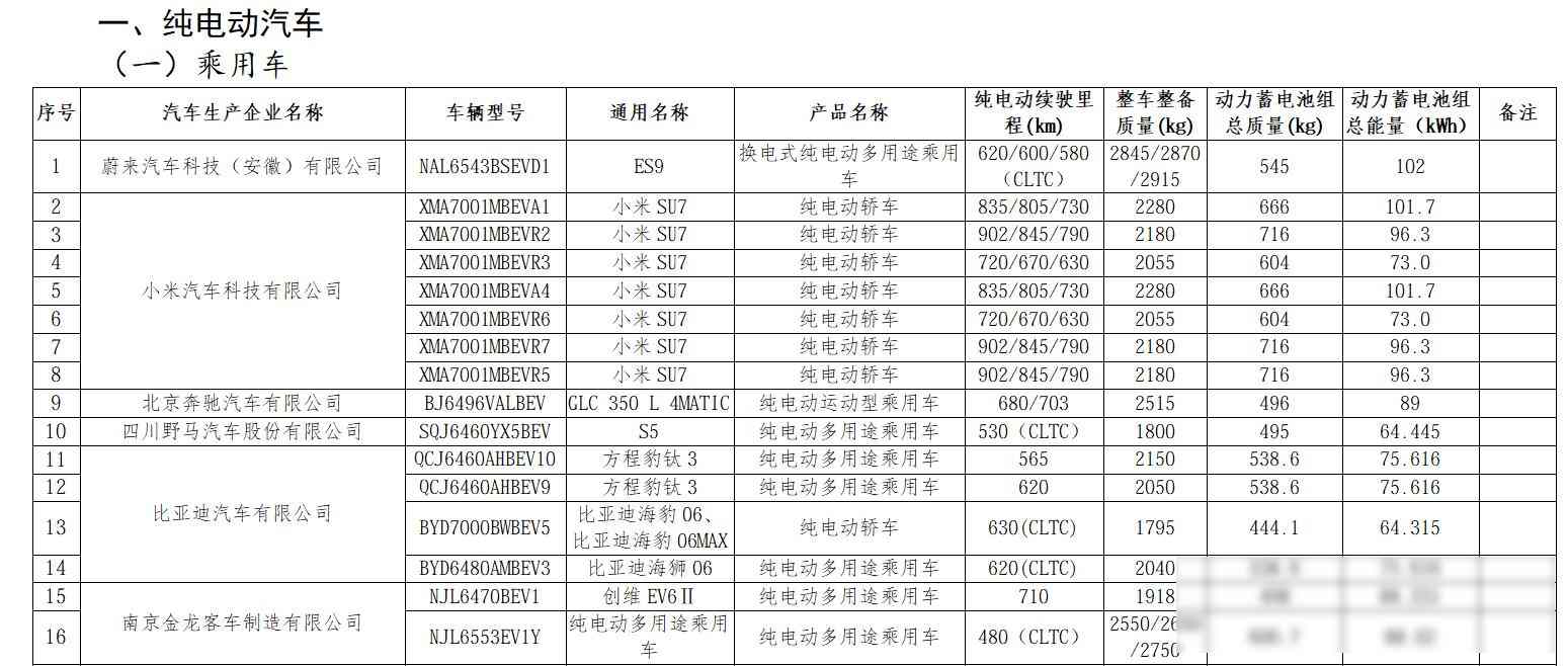 2月9号,工信部公布了一份新名单,就是《减免车辆购置税的新能源汽车车型目录》,小米SU7和比亚迪方程豹钛3这些新款车都列在里面,这是小米SU7去年3月上市以来第一次进入这个名单,相当于国家正式确认了它作为合规新能源车的身份,过去大家常常把小米SU7归为科技公司造的车,现在政策层面给予了认可,它的身份就有了变化。