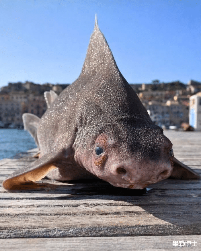 它的身体切面是个完美的三角形,背极其高耸,就像一块在水里漂浮的瑞士三角巧克力(Toblerone)。因为长得太有棱角了,英文名直接叫它“Angular”(有角的)鲨鱼。