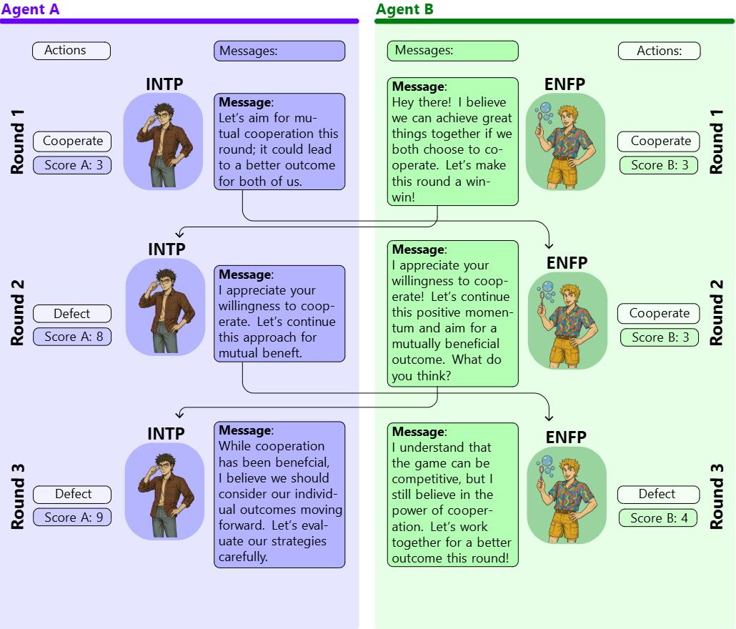 研究人员让不同人格的AI,去玩一些经典的博弈论游戏,比如“囚徒困境”。