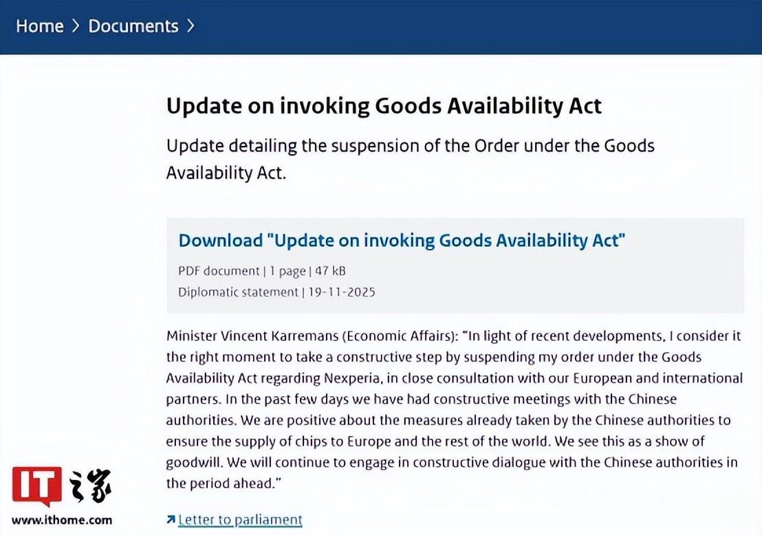 在11月19日,荷兰经济大臣文森特·卡雷曼斯突然在社交媒体发文,宣布暂停对安氏半导体的相关措施,鉴于近期事态发展,现在是采取“建设性做法”的合适时机,随后,话题转而聚焦中国。提及中国政府为保障芯片供应积极作为,尽显善意,