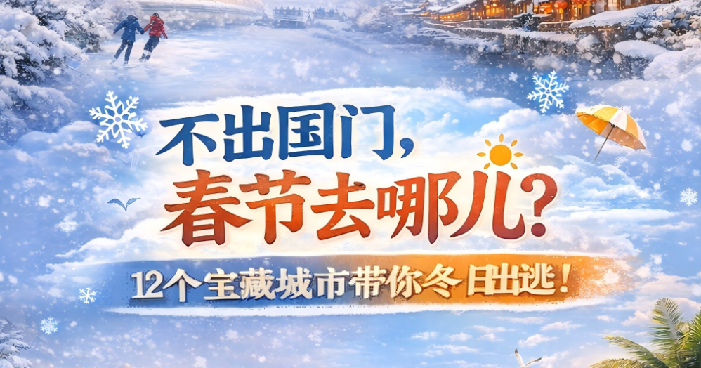 我们整理了12座宝藏城市,每座3-5天行程参考。从出行建议、必吃美食到特色打卡点,帮你轻松规划一场"慢节奏"的新年旅行,彻底去班味。不管是冰雪奇观、温泉养生,还是古城慢游、海边晒太阳,总有一款适合你,让你的春节假期既轻松又新鲜!