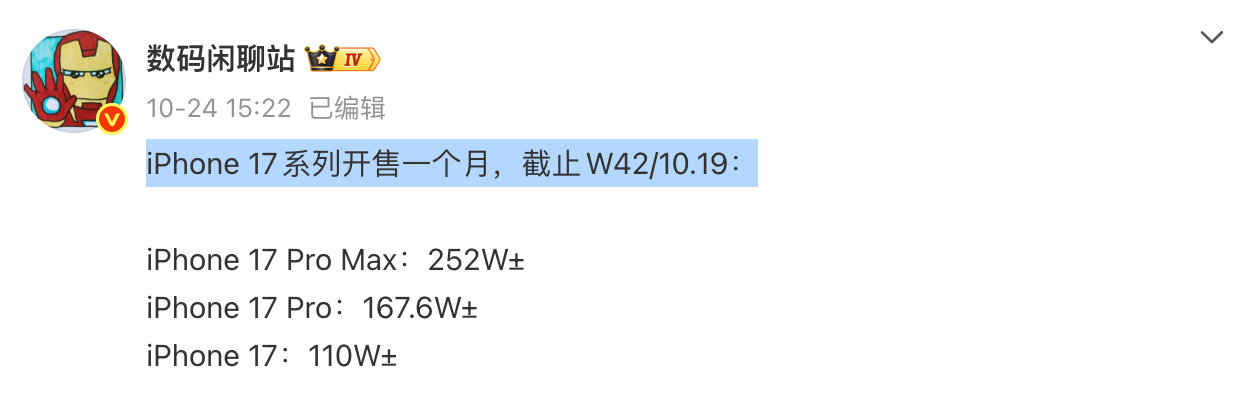目前,iPhone 17 系列的实时激活销量已经超 900 万台了,按照这个趋势走下去,估计到本月中旬就能突破 1000 万台。