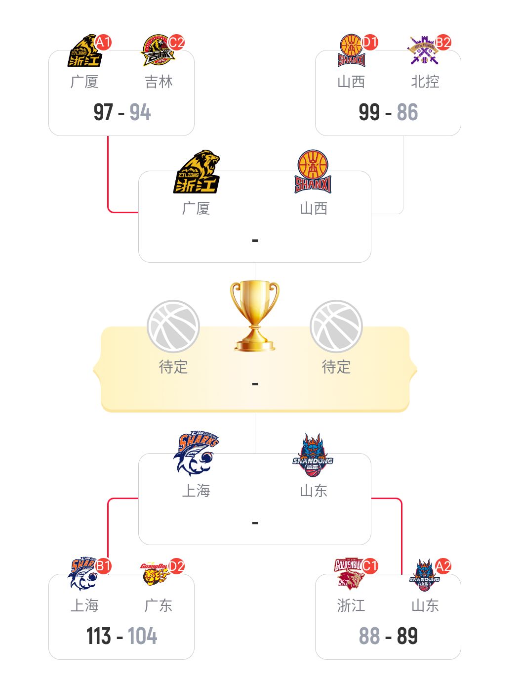 凭借新外援盖伊在第四节的超神发挥,单节飚进4记三分狂轰18分,山西最终以99-86逆转北控,拿到了最后一张晋级俱乐部杯4强的门票,如此一来,本赛季俱乐部杯最后4强席位也就确定,上半区广厦对阵山西,下半区山东将迎战上海,下面,就来分析一下这次俱乐部杯的争冠形势。