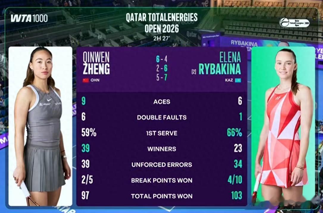 北京时间2月12日凌晨,WTA1000卡塔尔多哈公开赛女单1/8决赛,中国金花郑钦文迎战新科澳网冠军、赛会2号种子莱巴金娜。全场耗时2小时30分钟,三盘跌宕起伏,郑钦文先赢一盘后被逆转,以6-4、2-6、5-7惜败,止步16强虽败犹荣。