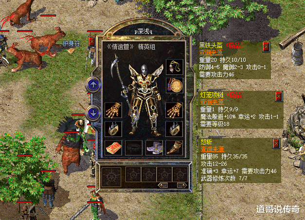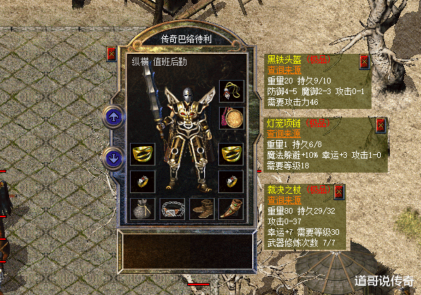 第二,怒斩运九套再看看这位拥有攻1黑铁的大战士,手持那把怒斩确实亮眼,只不过没升级攻击属性,这个图较早,估计现阶段已经升级几点了。运7怒斩搭配运2攻1灯笼项链成运九套,在当时比起运十套而言还是差了点意思。