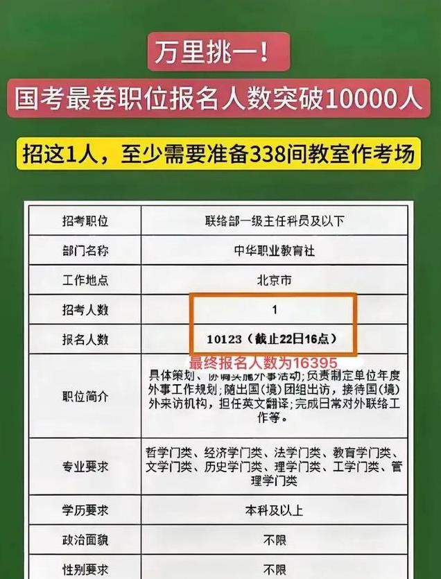 国考最难岗位1.6万人只要1个。网友:一个岗位让338个考场都坐满