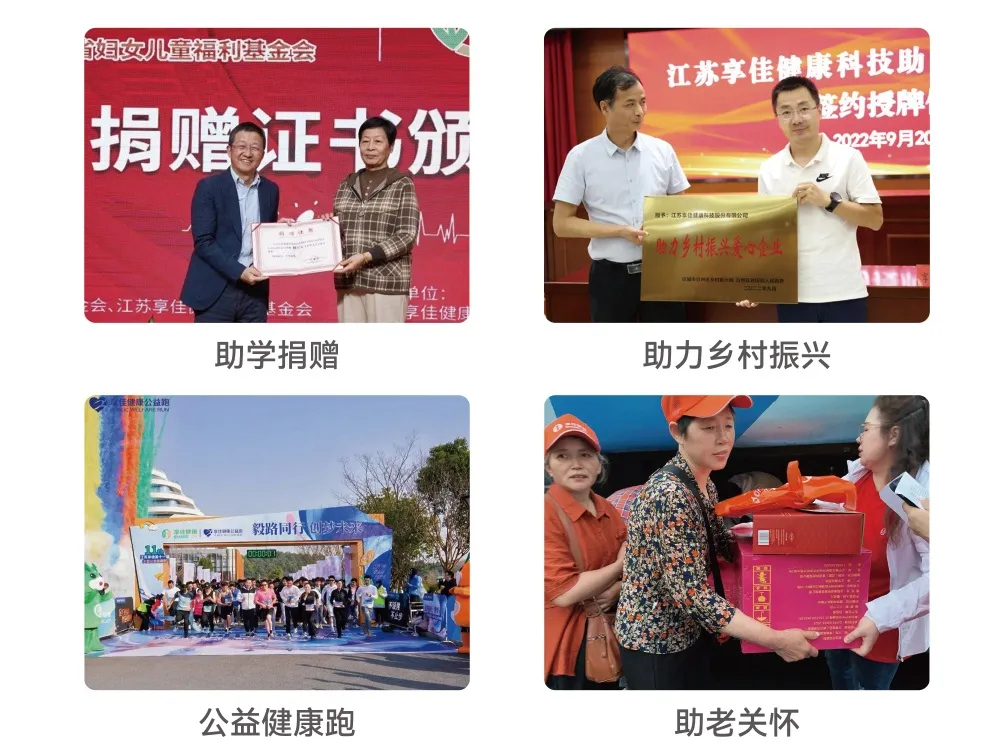 公益同心,以企业力量为支点,享佳集团深耕银发领域十八年,在2014年12月,就成立了以“助老、助学、助困”为宗旨的江苏享佳健康慈善基金会,将慈善公益日常化,已累计捐助金额超300万元。同时,享佳在集团内部发起并组建了以员工为主的爱心志愿者团队“义佳人”,坚持每年用实际行动为老人免费提供体检、拜访照护、赠送节礼等。