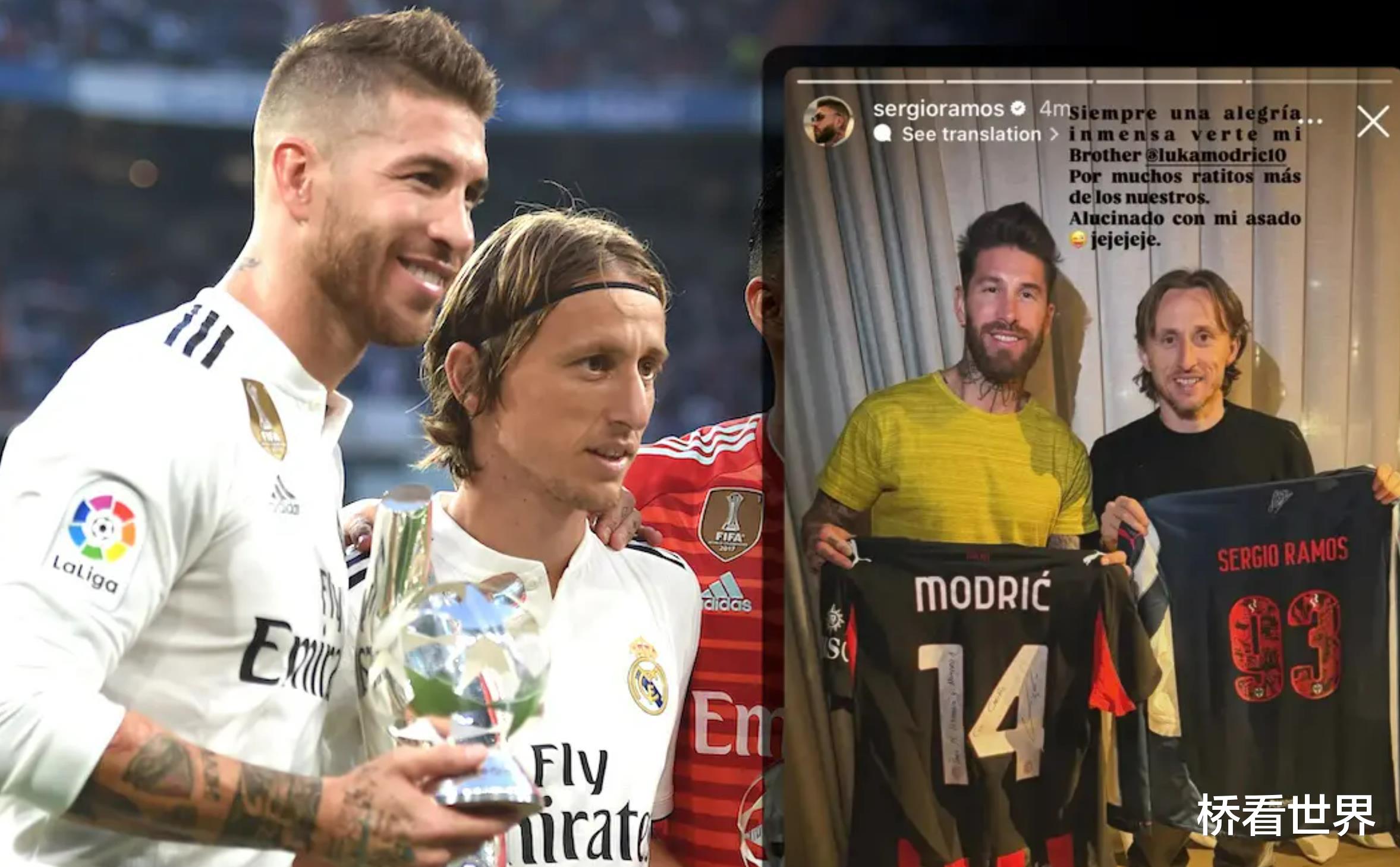 【拉莫斯收到莫德里奇赠送的AC米兰球衣】