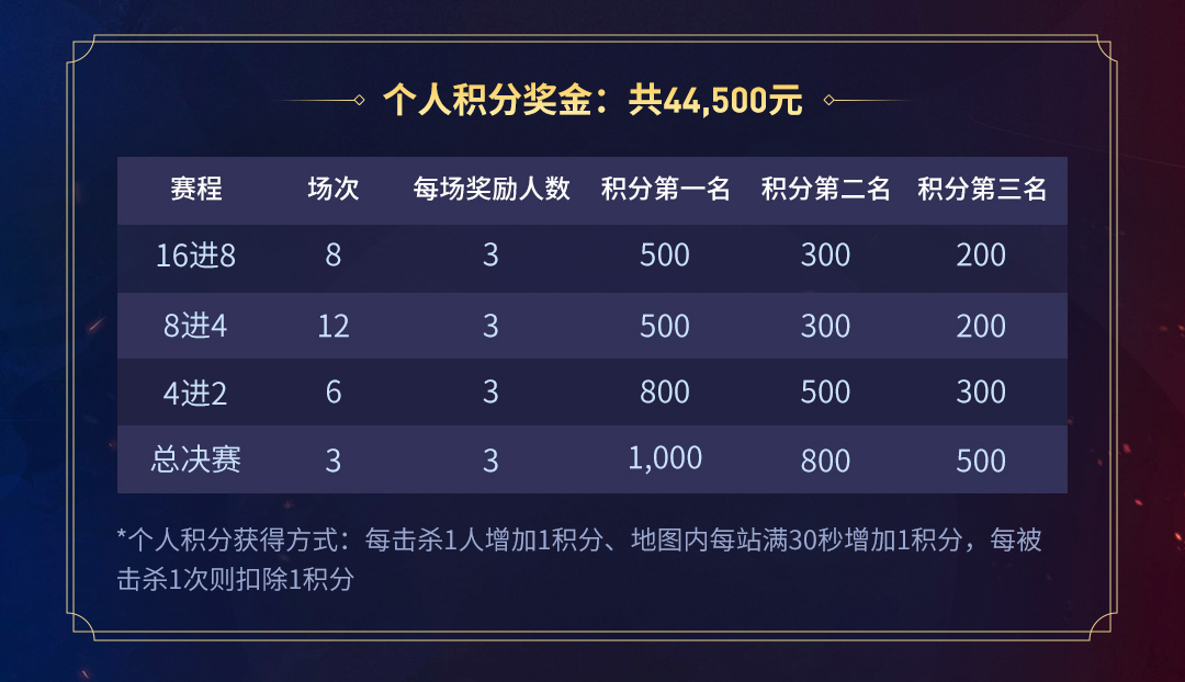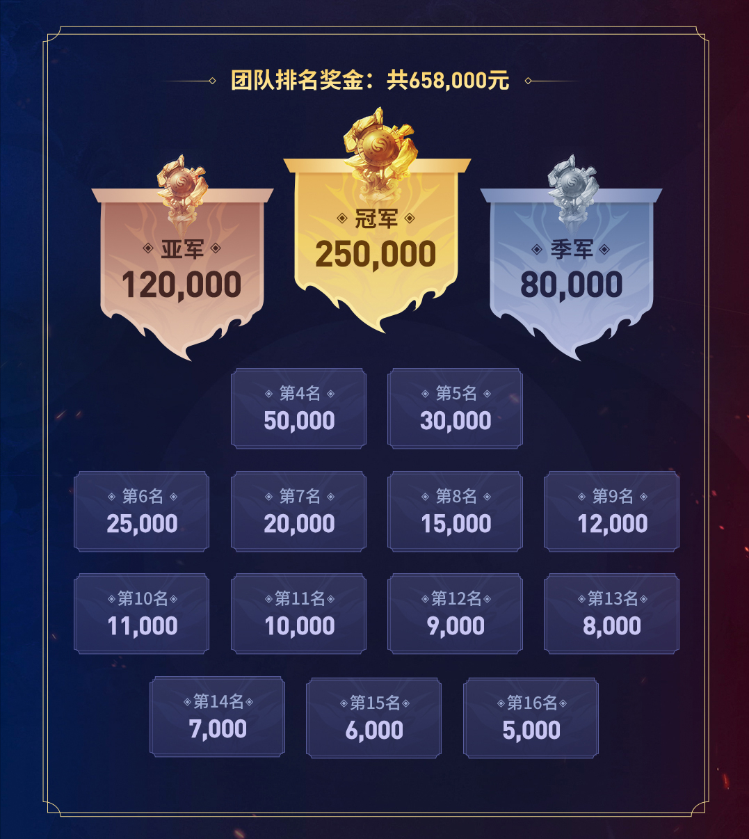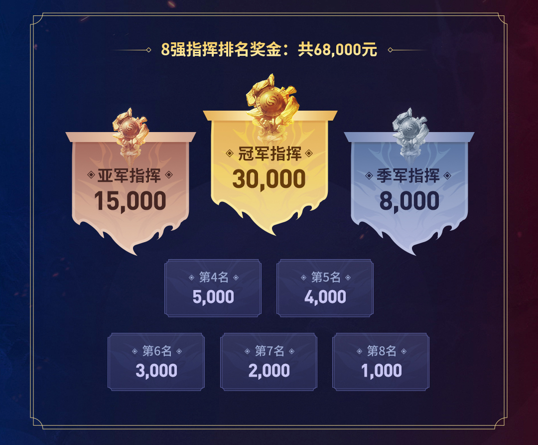 总奖池770,500元,分为团队排名奖金、8强指挥排名奖金、个人积分奖金三部分。