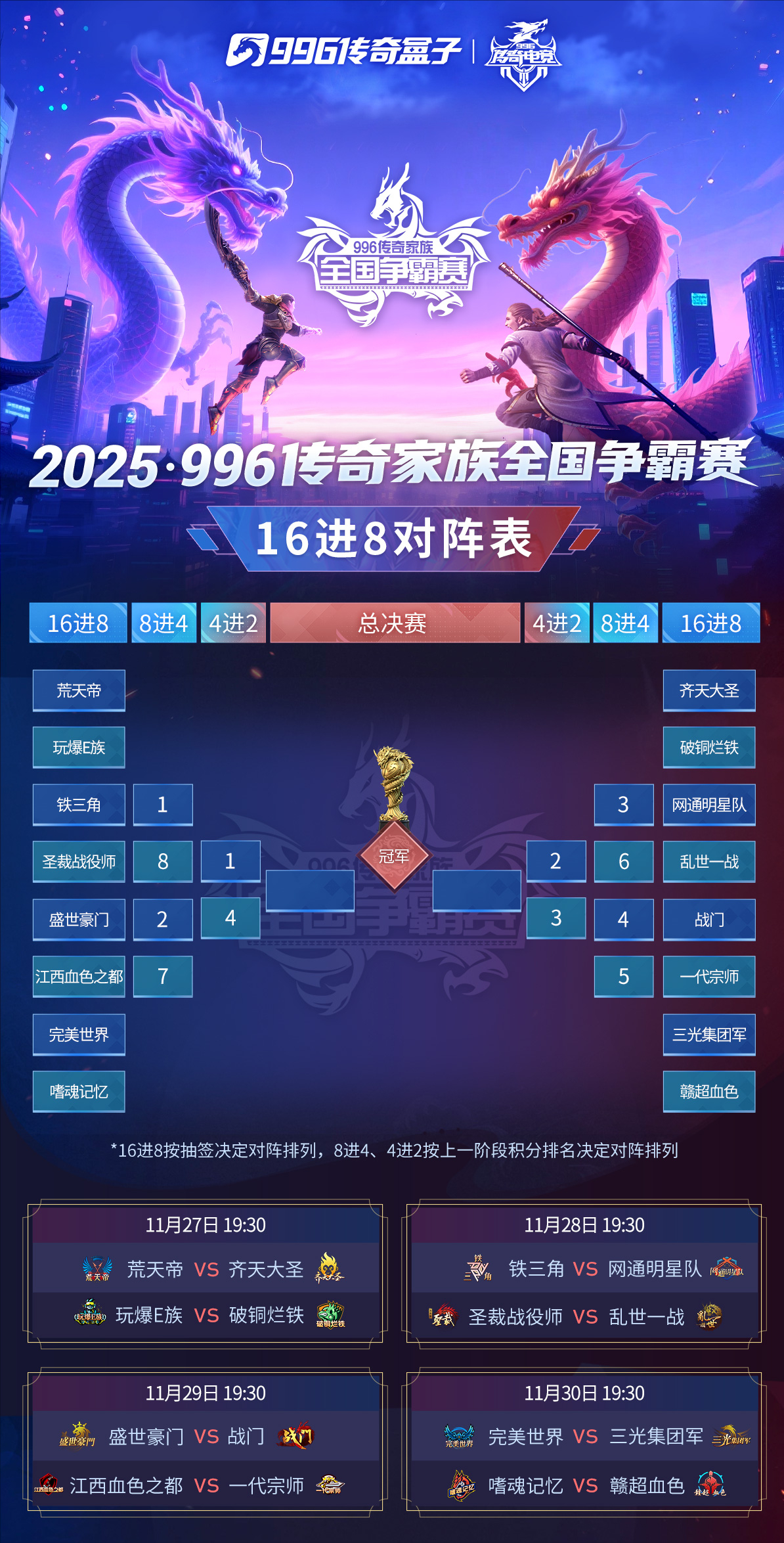 全国16强家族经过13天激战厮杀,从百人团战到五百人会战,战火不断升级!四轮晋级赛决出最终冠亚季军。